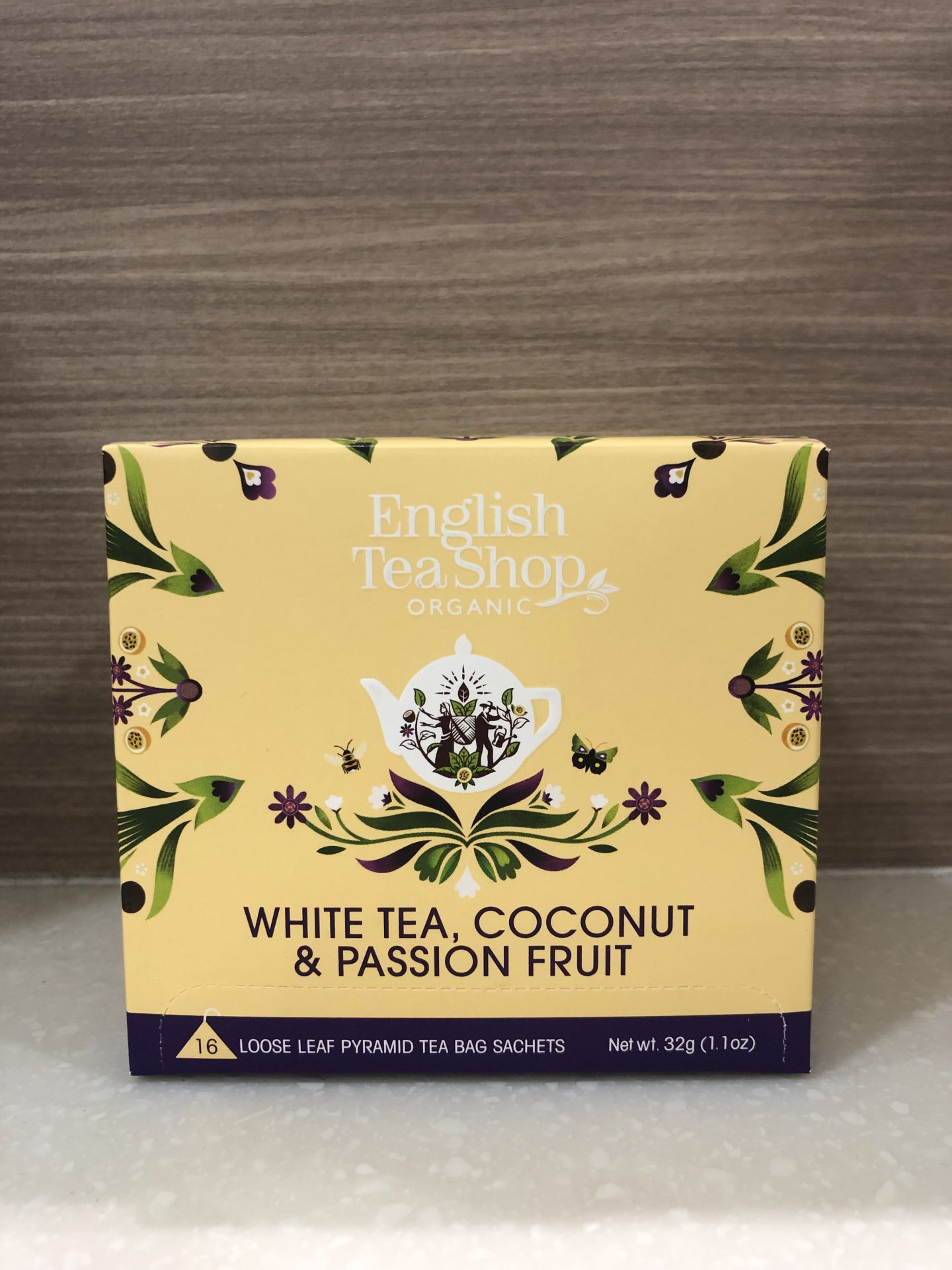 ENGLISH TEA SHOP Organic White Tea, Coconut & Passion Fruits Pyramid Loose Leaf Tea Sachet 16s 32gm